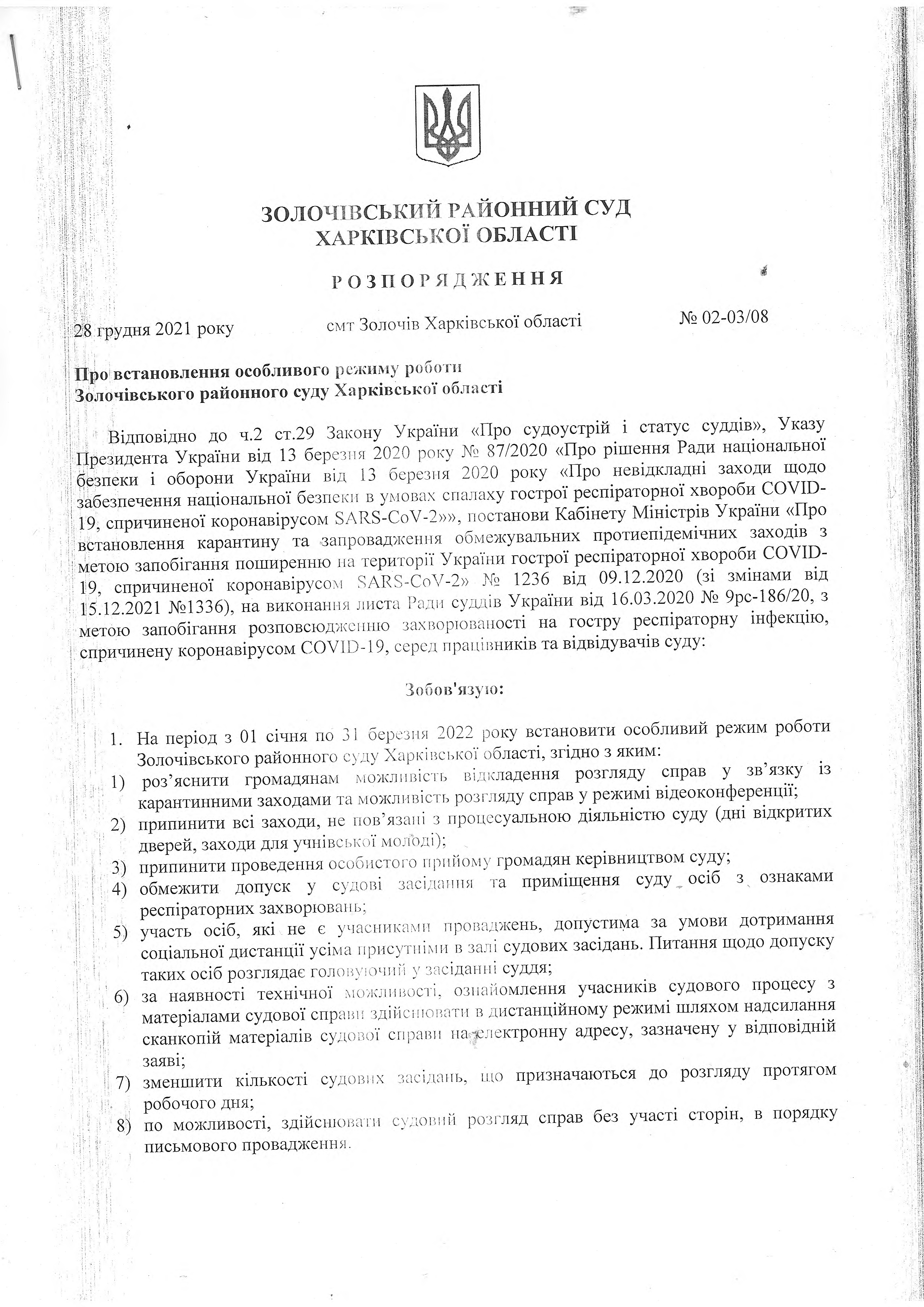 Розпорядженння 02-03/08 від 28.12..2021